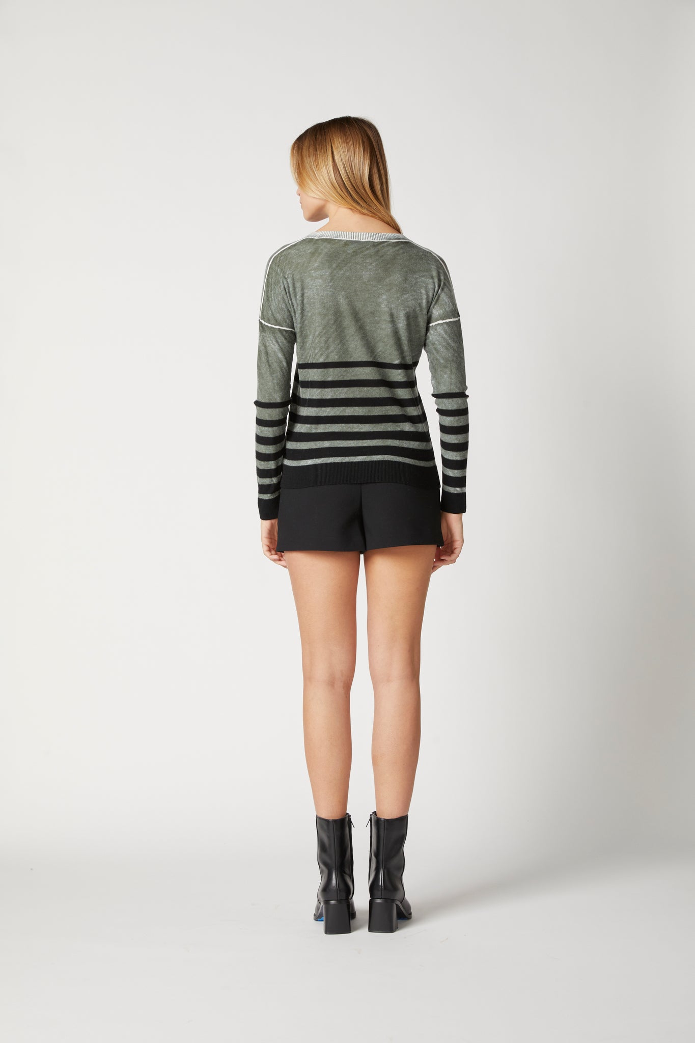 Overdyed Stripe V Neck