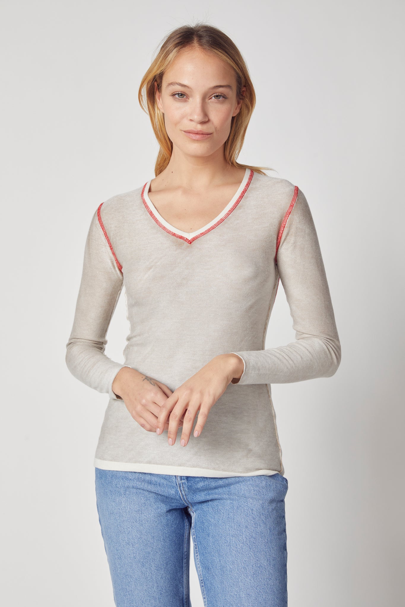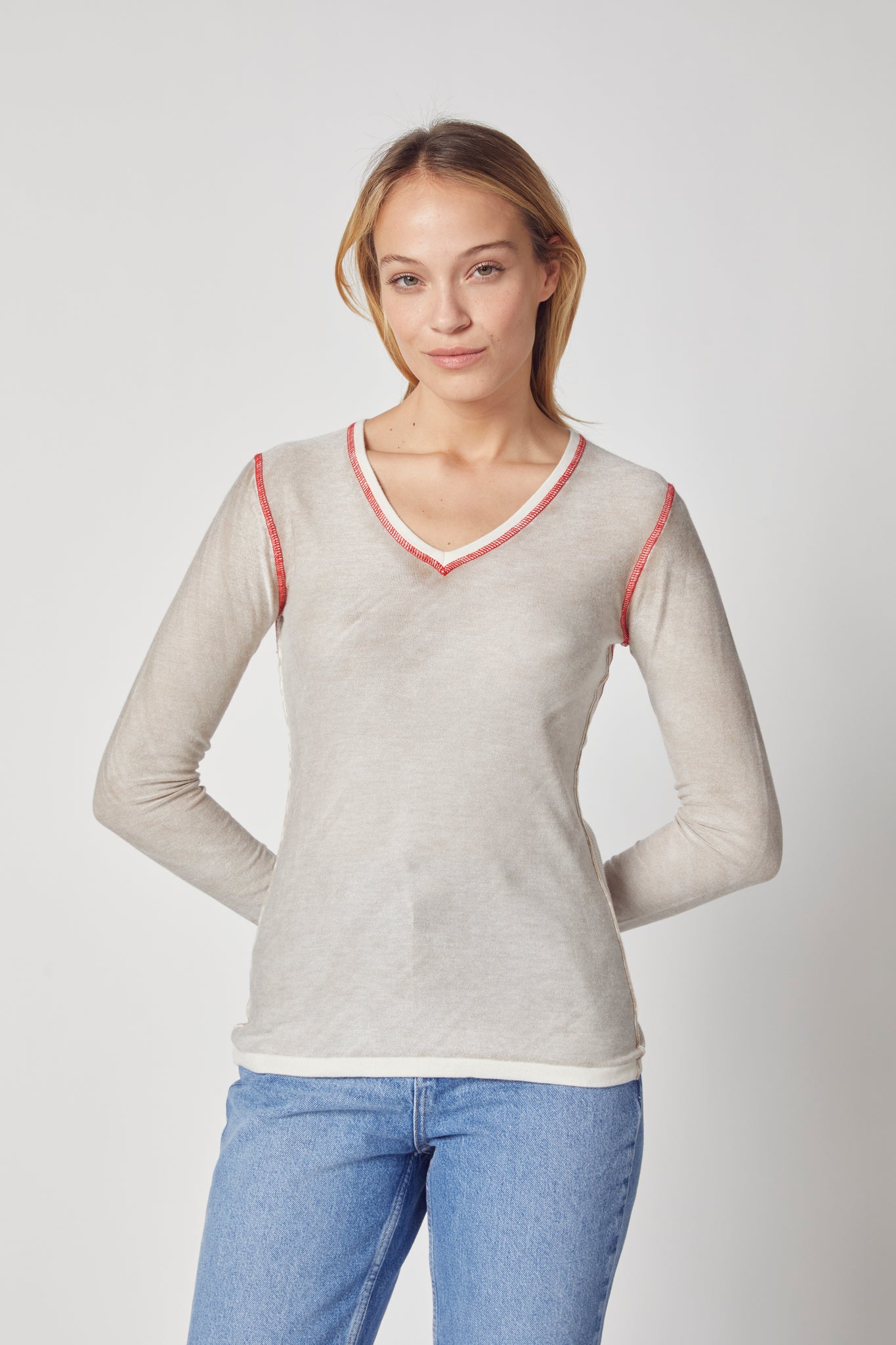 Overdyed V Neck Coverstitch